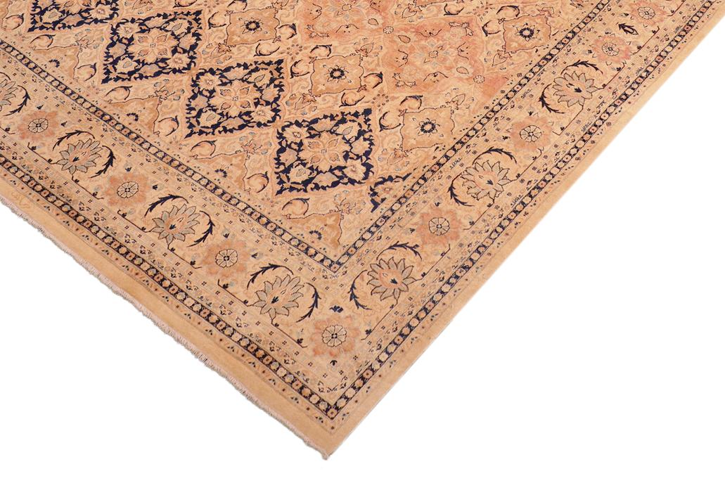 Traditional Kashan Mattie Beige Blue Hand Knotted Area rugs 8 x 10