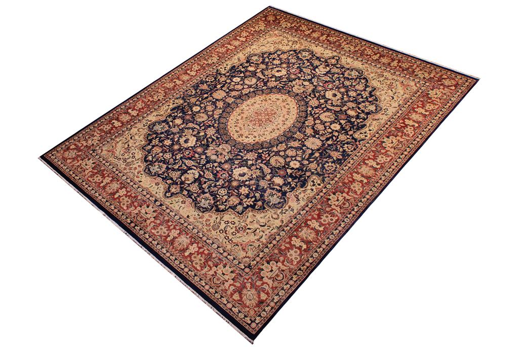 Traditional Hussani Lorna Blue Rose Hand Knotted Area rugs 9 x 12