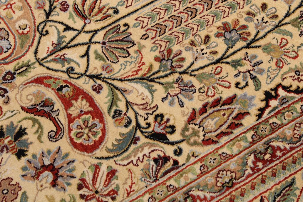 Designed with mesmerizing intricacy and gorgeous color palette, this hand-knotted masterpiece demonstrates the beauty and electrifying thrill of Pak Persian art. These meticulously hand-knotted Pak-Persian rug is made with pure wool and features breathtaking traditional, transitional, and tribal designs in bold luxurious color pallets. Known for their intricate designs these rugs are a reproduction of Persian rugs, made in Pakistan with unique Mughal designs. Made by master weavers using the same Persian texture, design and dying technique, we wanted to produce the most significant manifestation of Persian art, life, and culture. This rug is most famous for its exceptional quality, incredible designs, patterns, and vibrant rich color. Pak-Persian rugs made with Persian weave with high knot counts, which enables the high intricacy and detail found in the patterns are also referred to as "State of art", each color adds a rich beautiful detail in the artwork of this rug. The design, color, and beautiful chromatic composition with a vibrant sheen with intricate designs, exude beauty, elegance, and quality make this rug a masterpiece of its own.