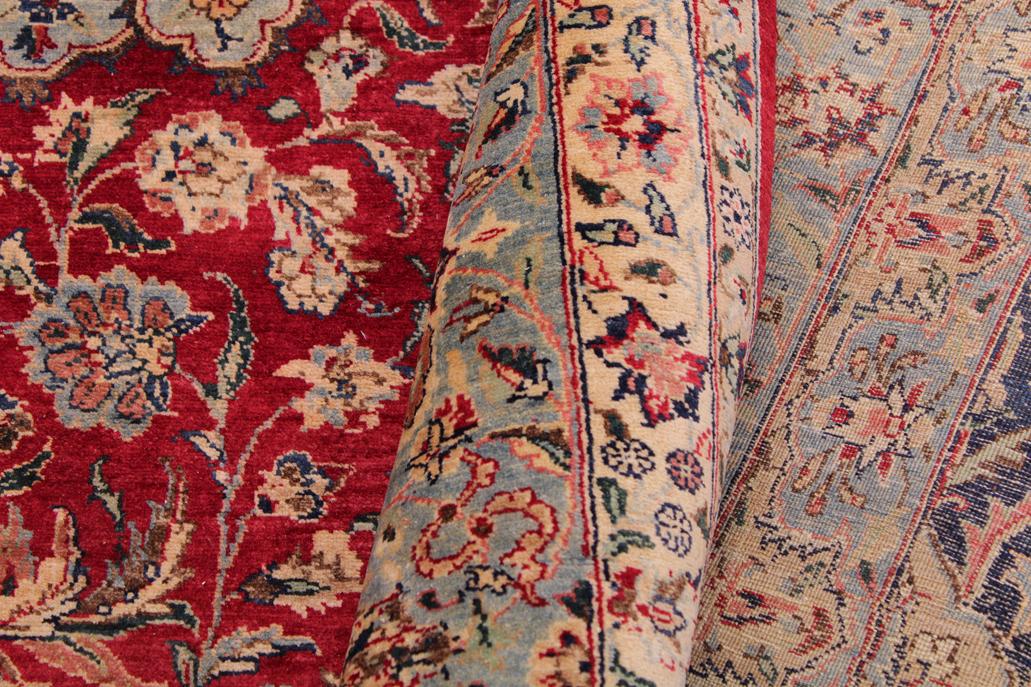 Traditional Kashan Gracelyn Red Lt. Blue Hand Knotted Area rugs 9 x 12