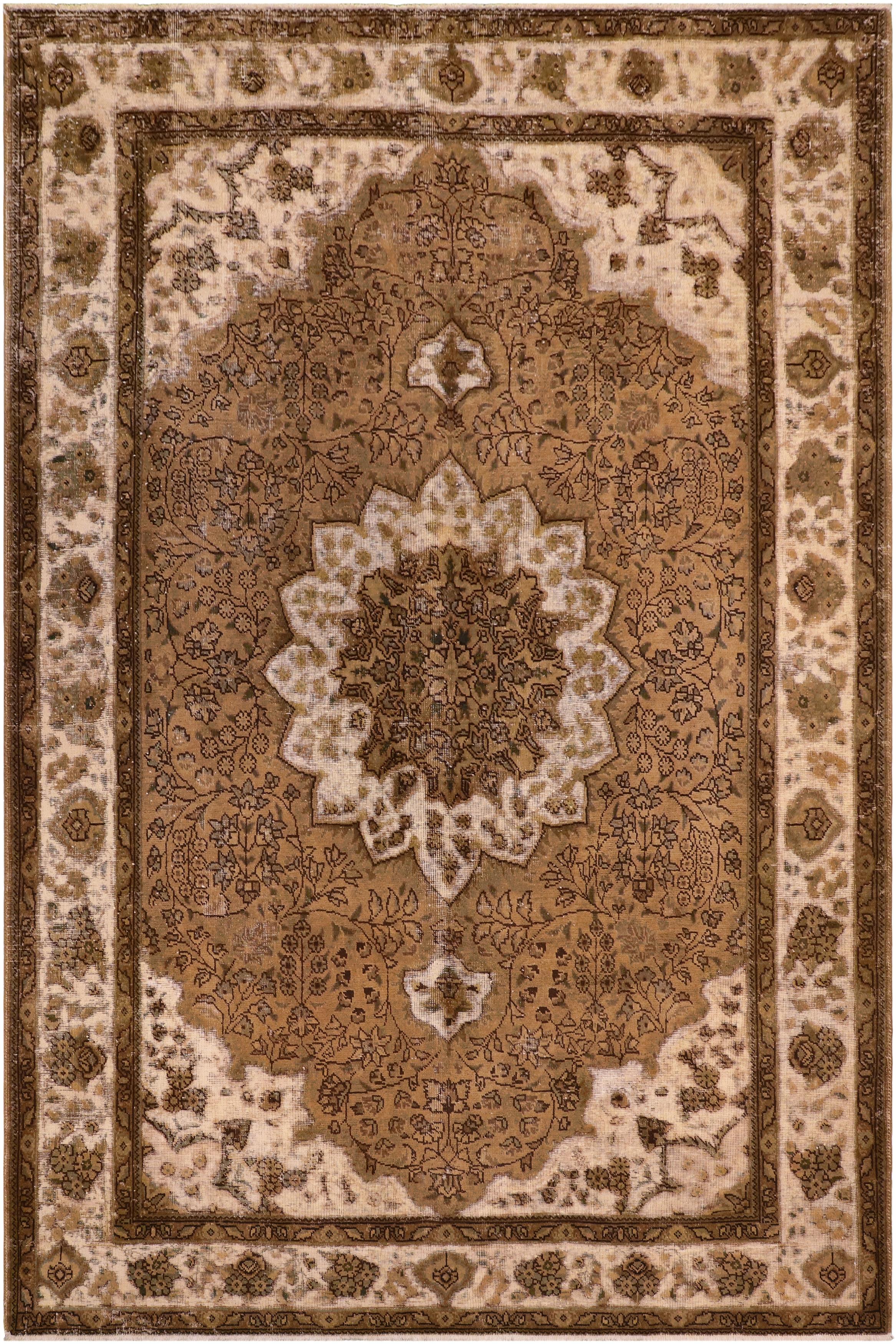 This stunning hand-knotted vintage wool rug is a remarkable addition to any decor, capturing attention with its exceptional colors and intricate traditional design. Crafted by highly skilled artisans renowned for their exquisite Persian knotted rugs, each piece reflects an impressive antique aesthetic. The meticulous process of neutralizing original colors, distressing, and saturating them in an elegant color palette gives them a fresh and modern appeal. With the elegance of aged and timeworn beauty, these rugs exude the charm of vintage pieces without the burden of natural wear. These gorgeous rugs feature faded patterns, muted tones, and softened textures that authentically replicate antique rugs while maintaining a striking and classic presence. This masterpiece draws profound inspiration from timeless rug designs, seamlessly blending harmony and contrast to elevate any space. With its intricate design and exquisite coloration, this wool rug is undeniably a standout piece that transforms any room.