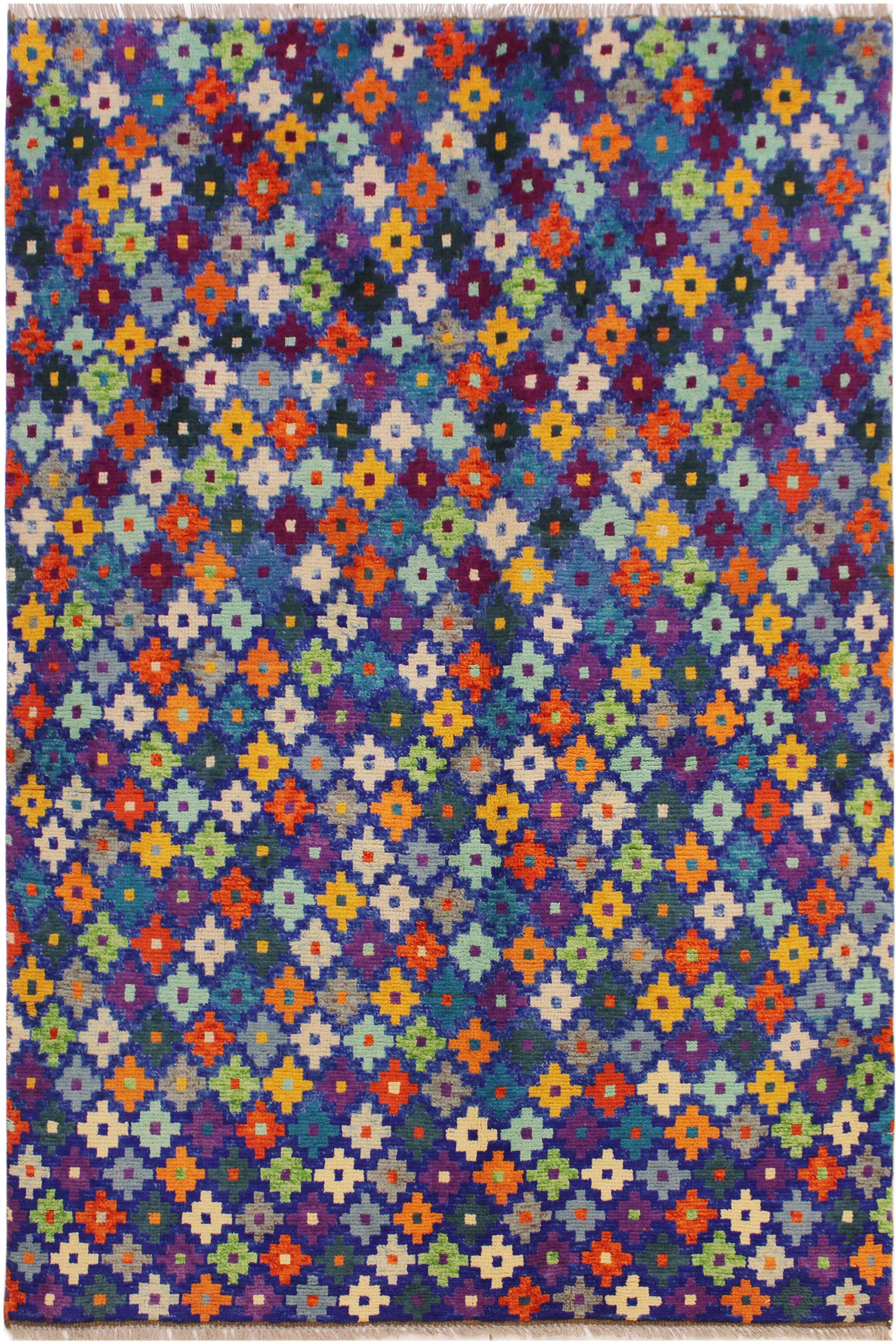 Contemporary Balochi Angeliqu Blue/Orange Wool Rug - 4'9'' x 6'6''