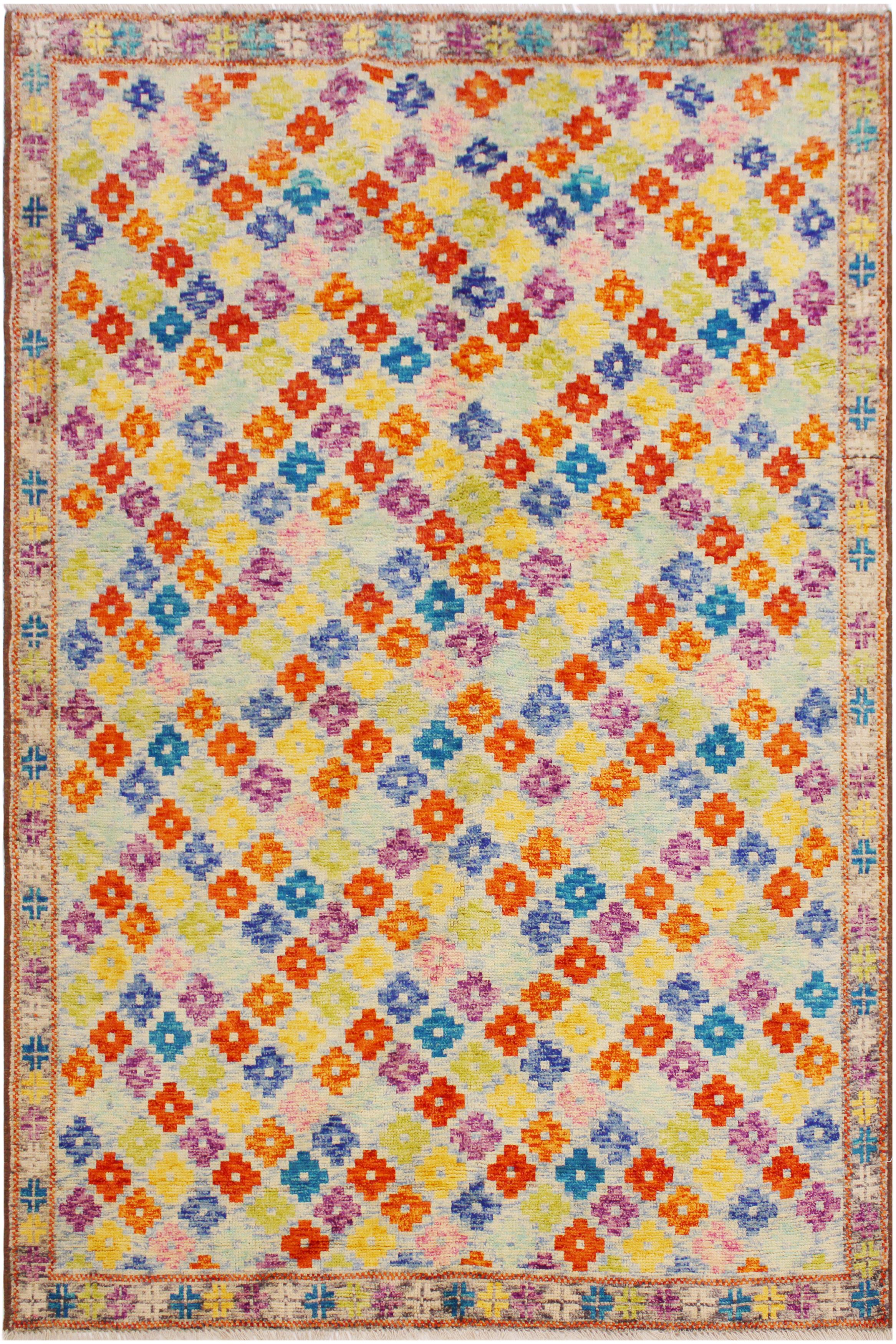This stunning hand-knotted Afghan Balouchi rug is a captivating addition to any decor. Crafted by skilled artisans, it showcases exquisite colors and intricate designs. With a blend of traditional, transitional, and geometric patterns, this one-of-a-kind rug features a plush pile made from high-quality wool, providing a luxurious texture and appearance. It adds softness, warmth, and comfort to any room, making it a perfect choice for enhancing your space.