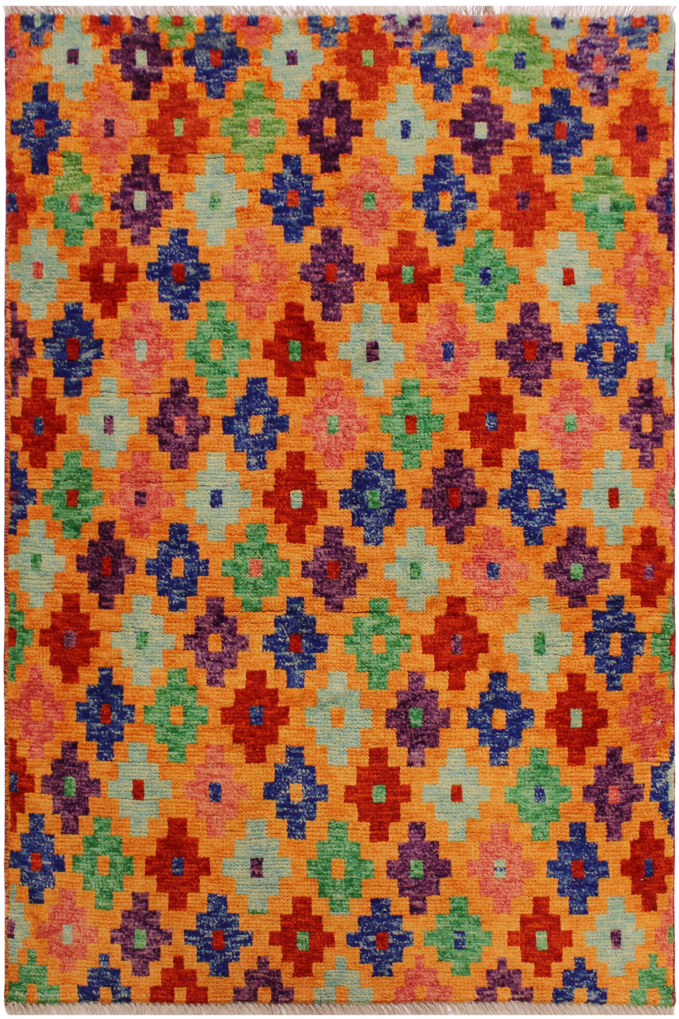 Eclectic Balochi Clemenci Orange/Red Wool Rug - 3'4'' x 4'10''