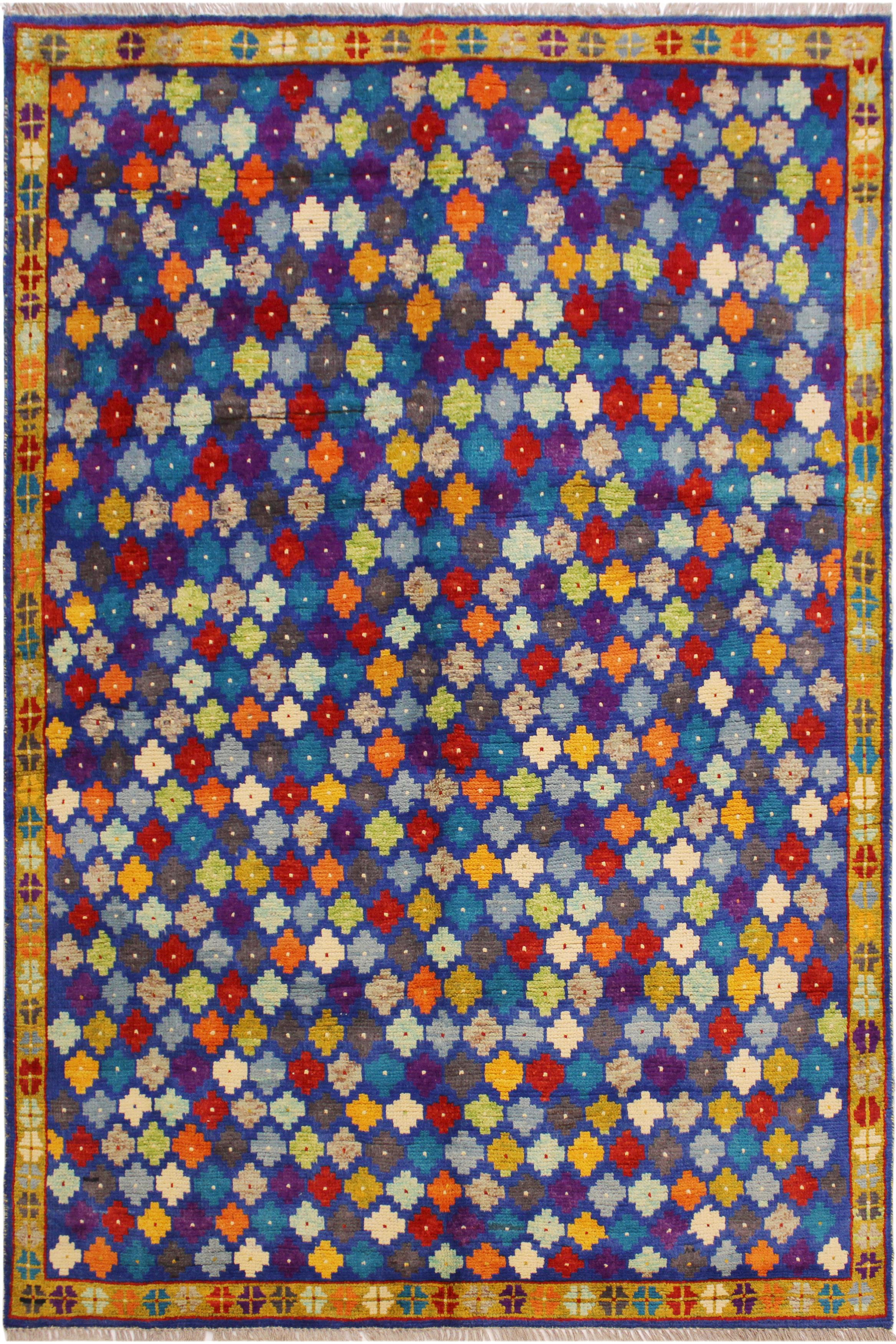 Contemporary Balochi Albertin Blue/Gold Wool Rug - 4'10'' x 6'8''