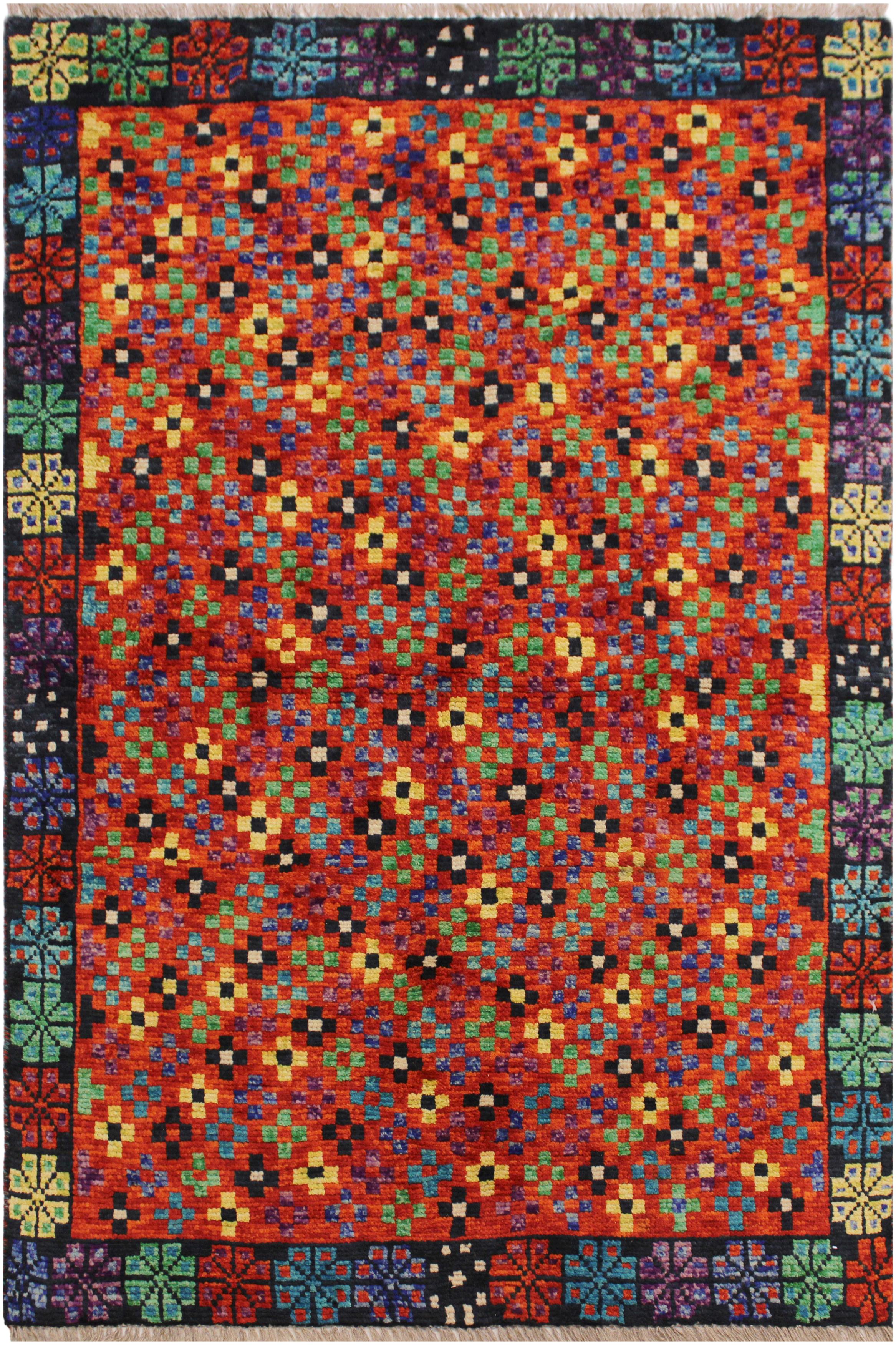 Eclectic Balochi Alease Orange/Black Wool Rug - 3'4'' x 4'9''