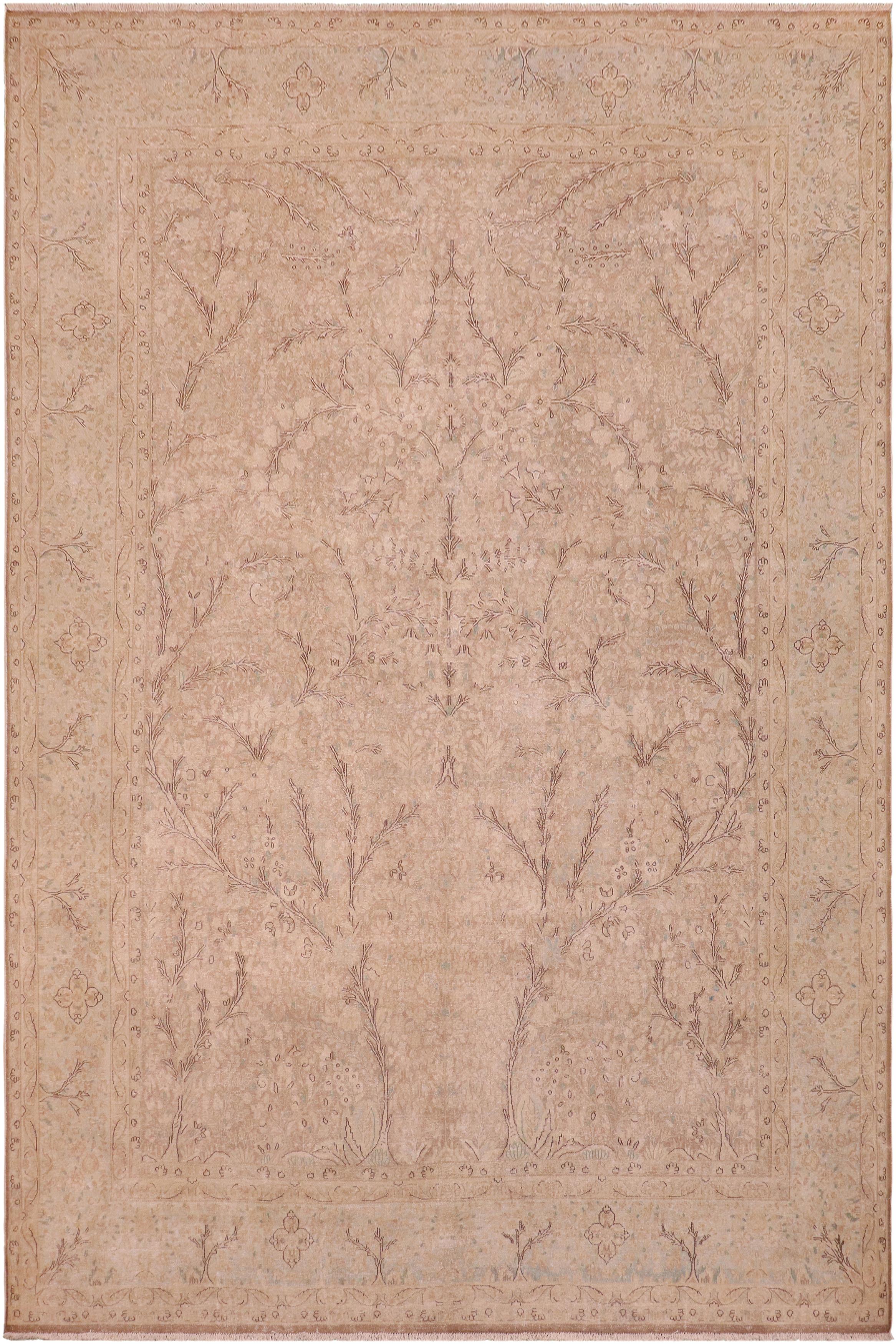 Traditional handmade Persian vintage distressed Tan Blue Hand Knotted RECTANGLE 100% WOOL area rug 9 x 13
