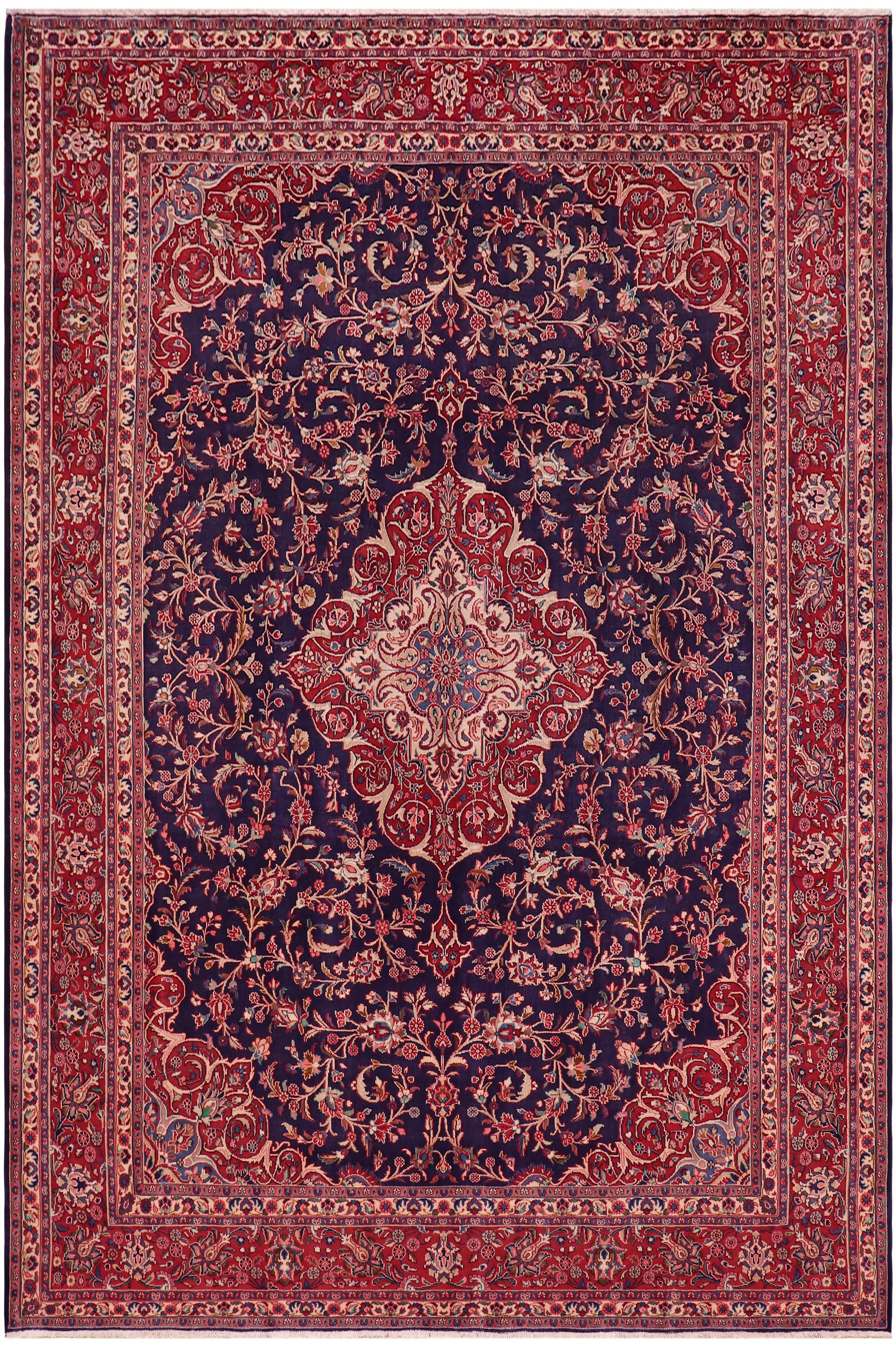 Distressed Antique Kashan Pearce Blue/Red Wool Rug - 9'8'' x 12'10''