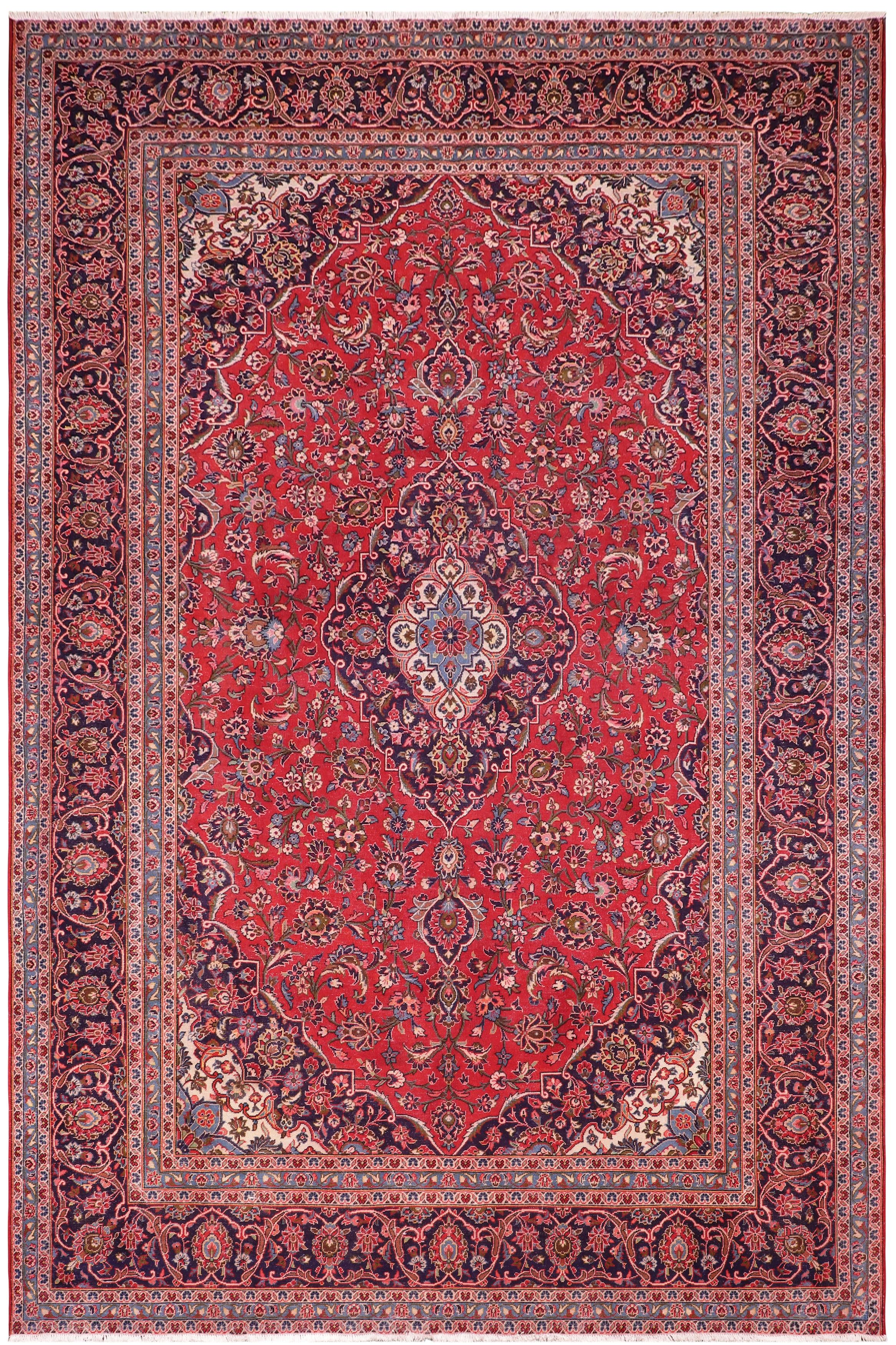 Distressed Antique Kashan Carroll Red/Blue Wool Rug - 9'3'' x 13'1''