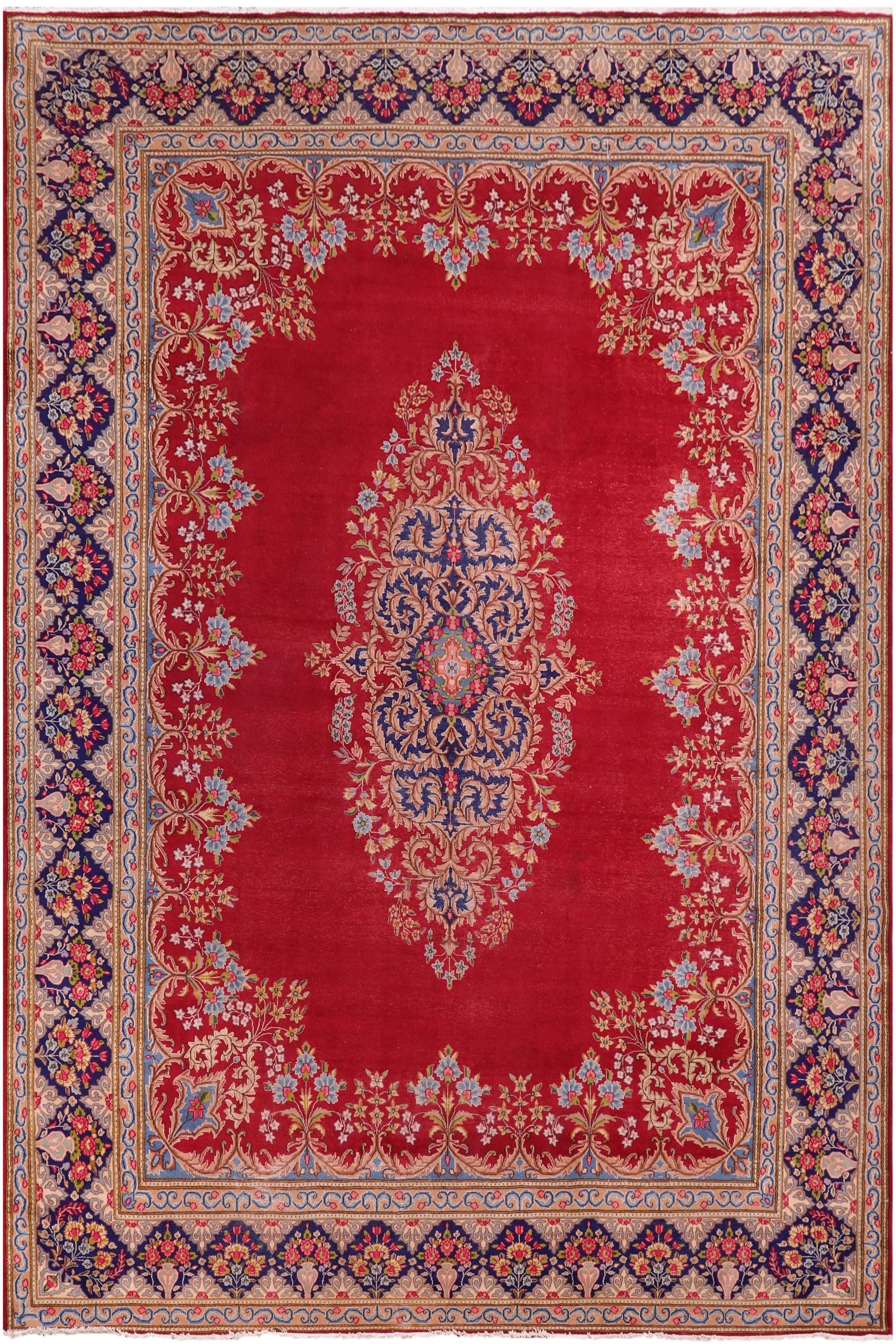 Vintage Antique Kashan Allison Pink/Blue Wool Rug - 9'10'' x 12'5''