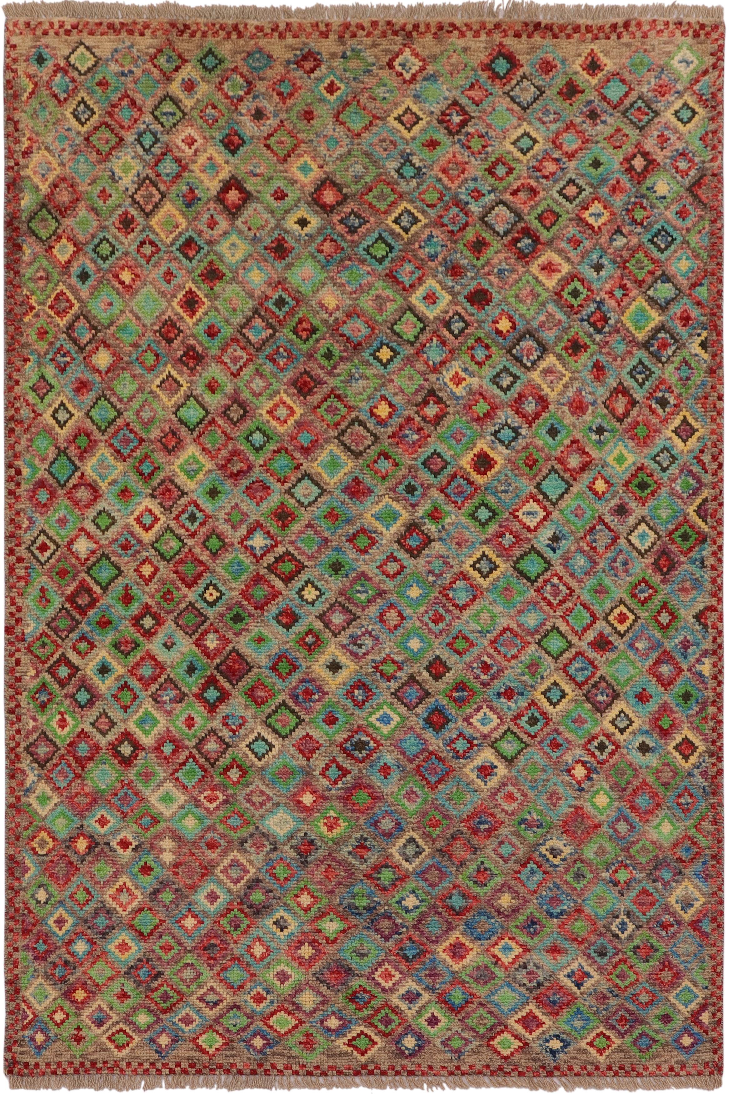 Modern Balochi Deshawn Brown/Red Wool Rug - 4'0'' x 5'9''