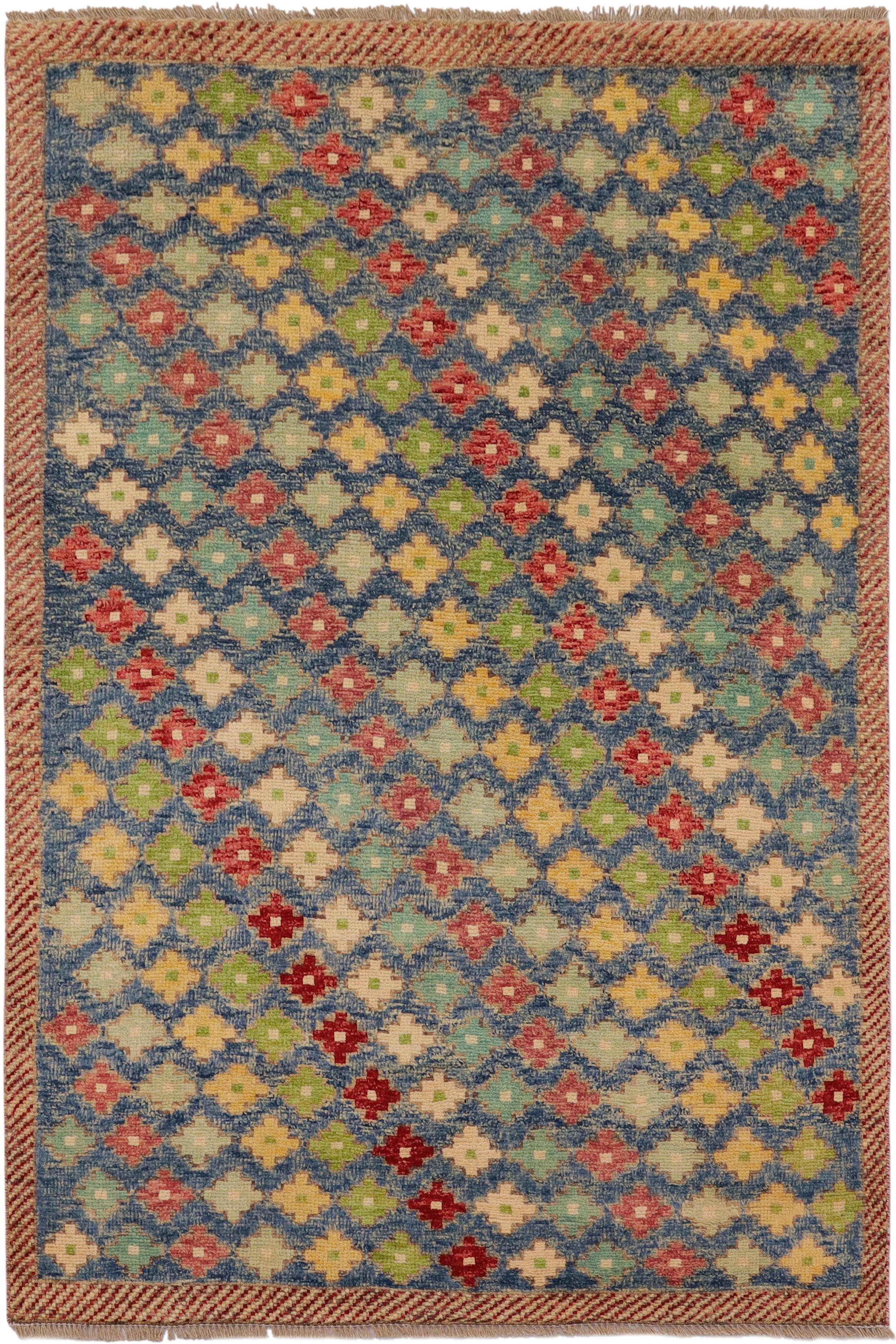 Boho Chic Balochi Jeremiah Blue/Red Wool Rug - 4'2'' x 6'1''