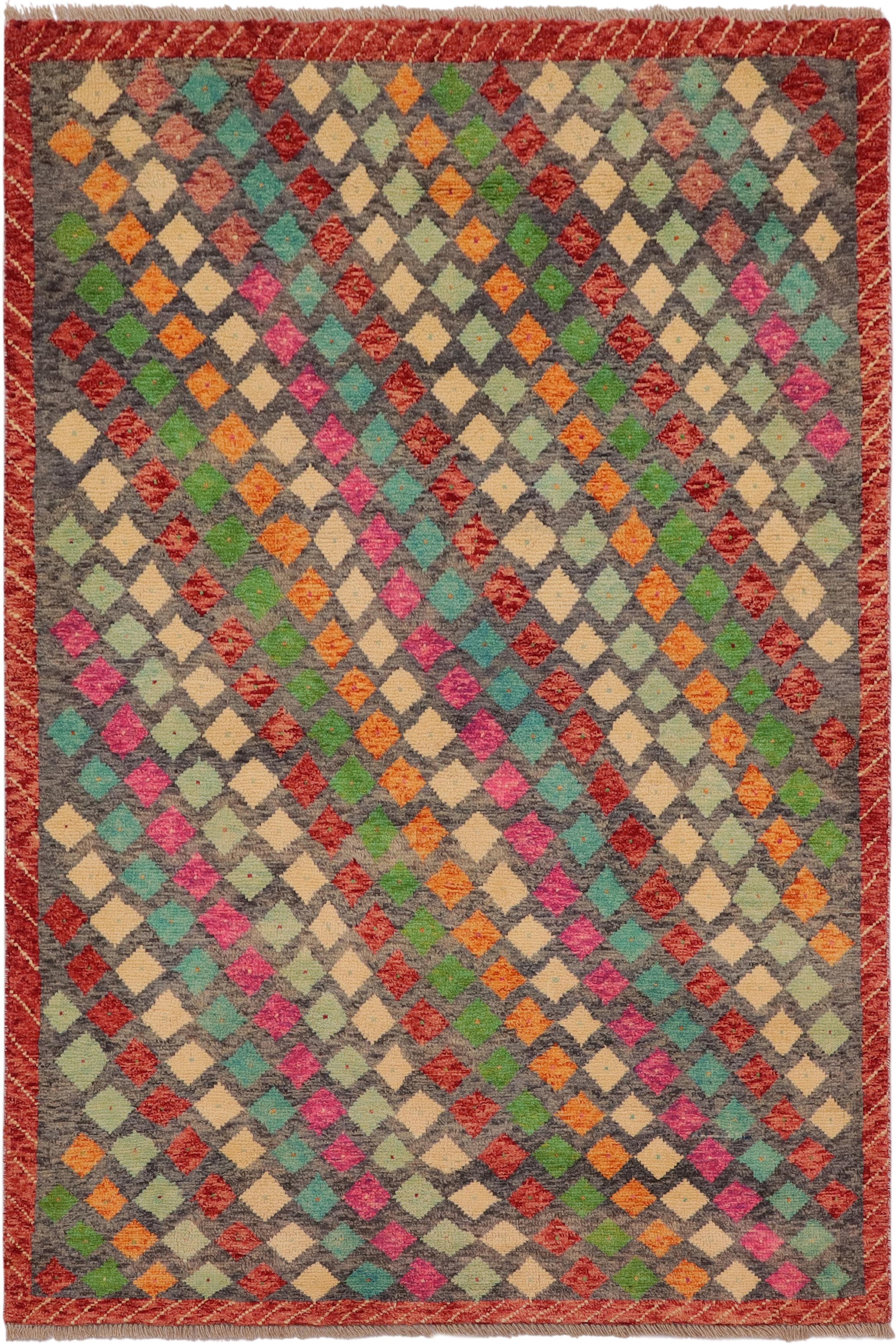 handmade Modern Balouchi Gray Red Hand Knotted RECTANGLE 100% WOOL area rug 4x6