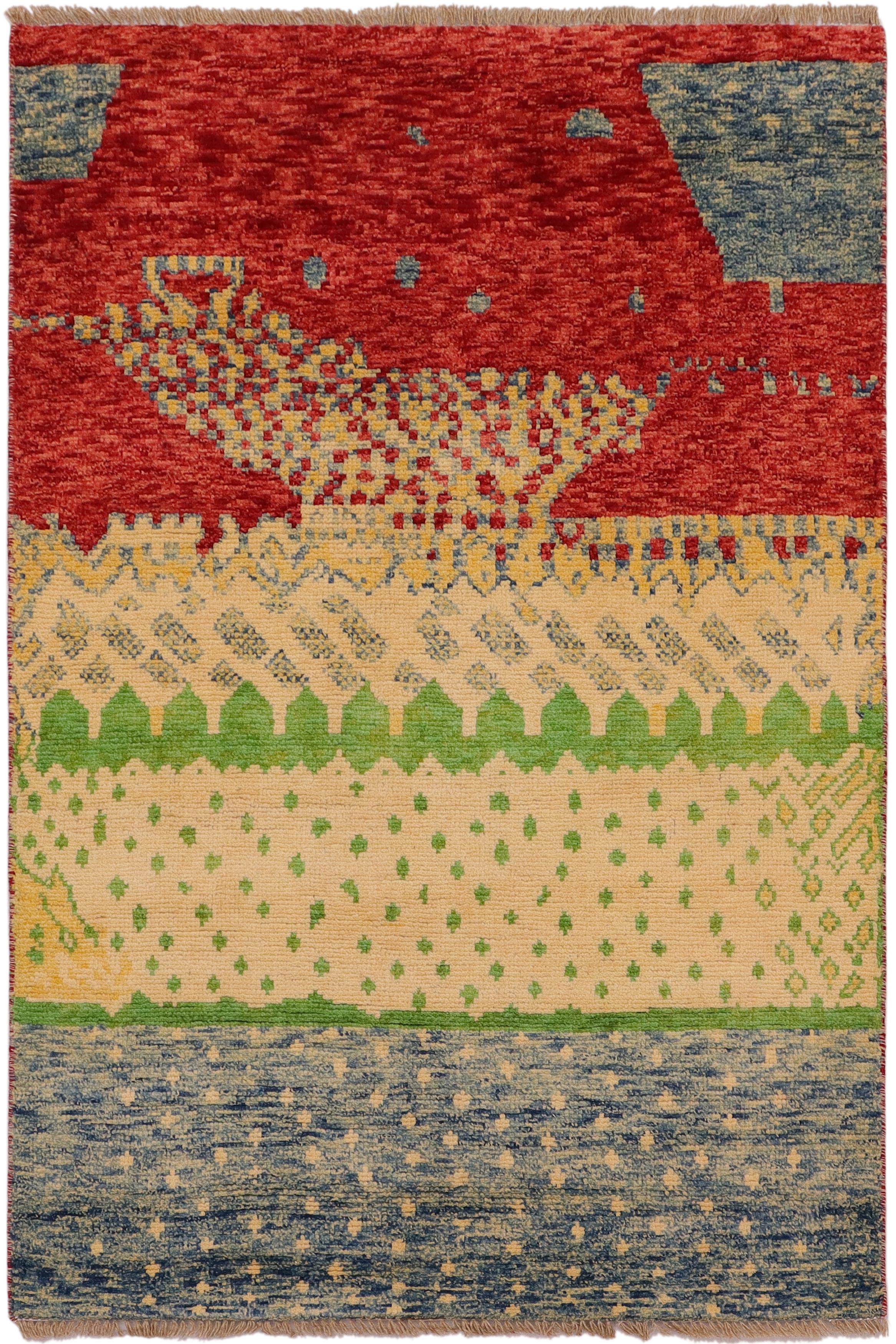 Eclectic Balochi Luke Blue/Red Wool Rug - 3'2'' x 4'11''