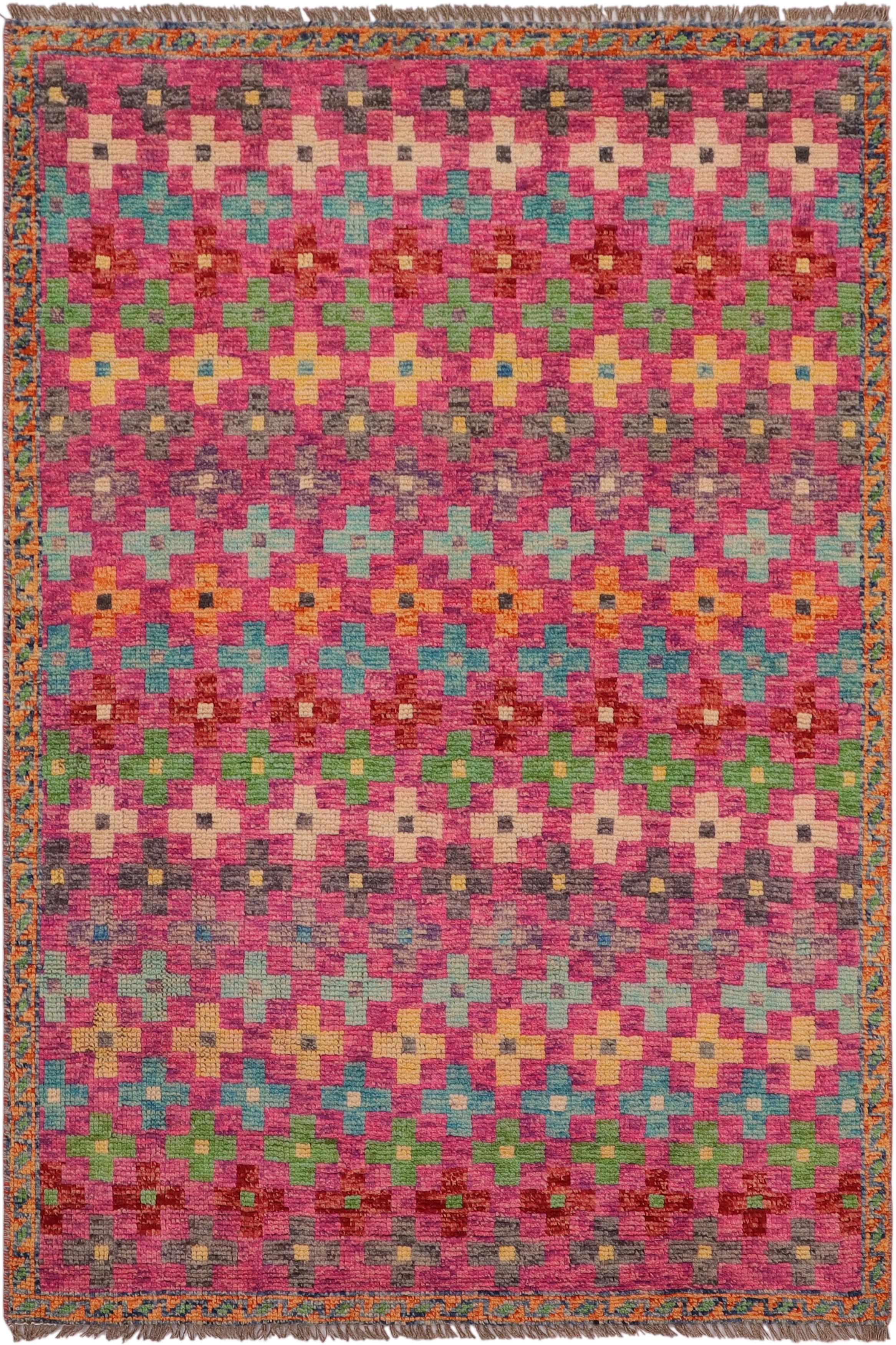 Boho Chic Balochi Brayden Pink/Orange Wool Rug - 3'4'' x 4'10''