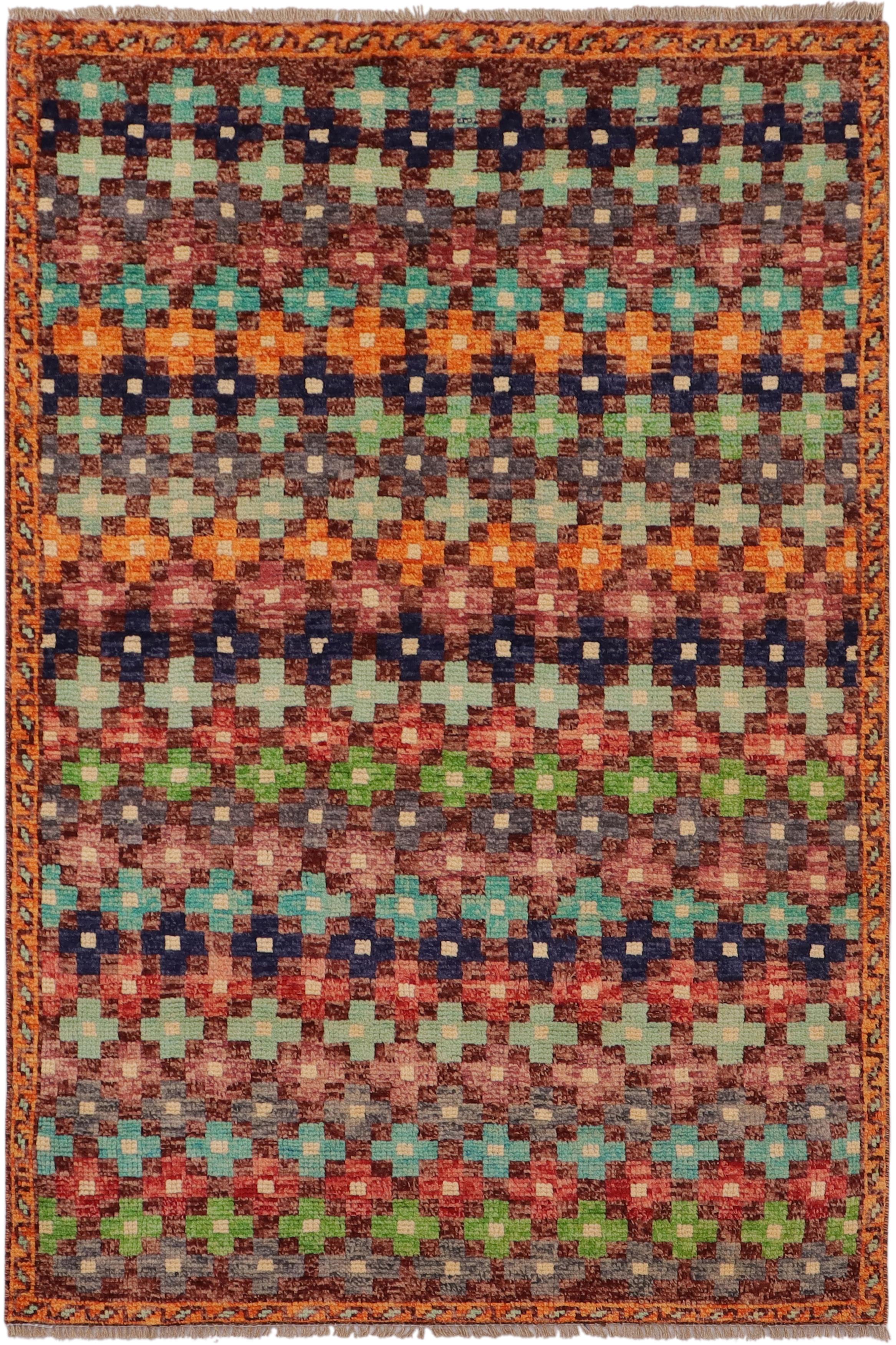 handmade Modern Balouchi Maroon Orange Hand Knotted RECTANGLE 100% WOOL area rug 3x5