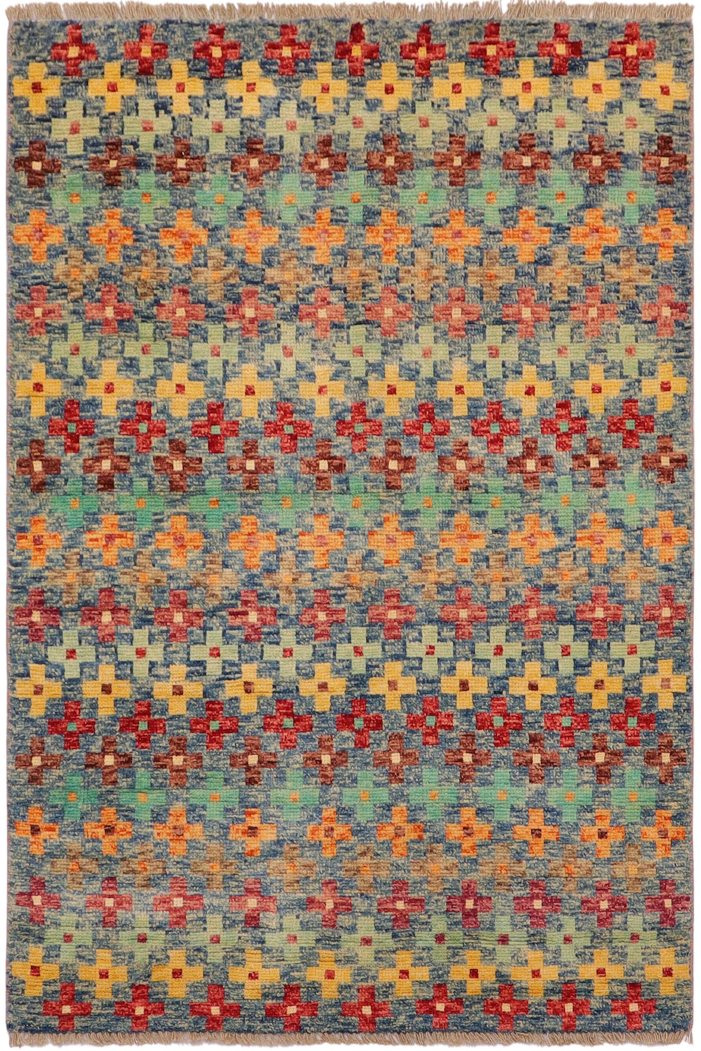 Shabby Chic Balochi Kara Blue/Red Wool Rug - 3'4'' x 5'1''