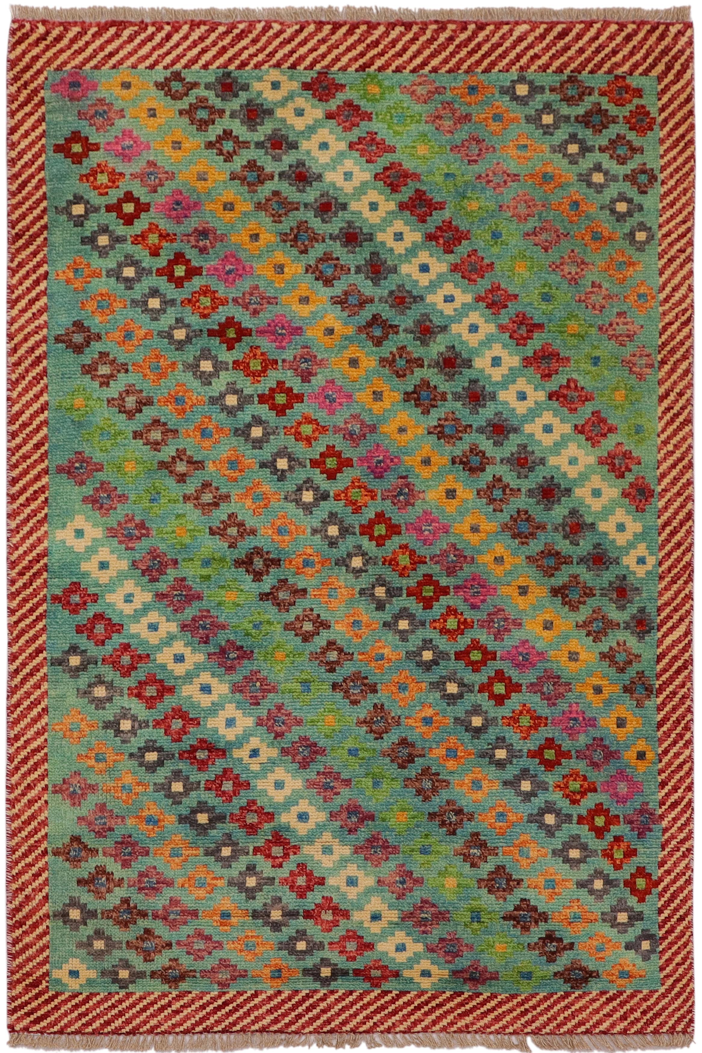 Eclectic Balochi Cecilia Blue/Red Wool Rug - 3'4'' x 5'1''
